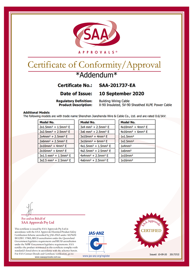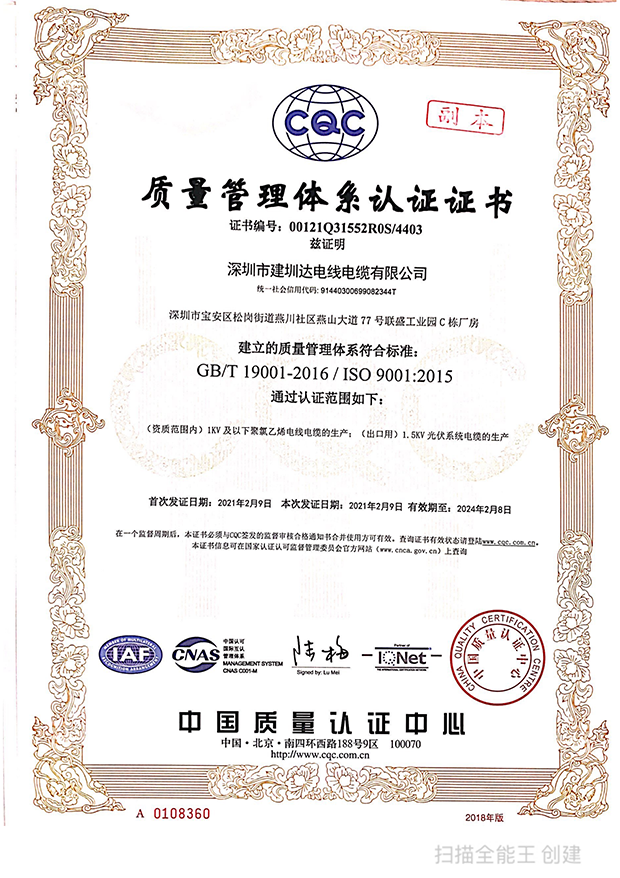 深圳建圳達(dá)電線電纜有限公司,成立于2000年,是一家電線電纜制造商,我們通過了世界各地不同市場(chǎng)的多數(shù)認(rèn)證,如:CCC、RoHS、CB、SAA、TUV、VDE、PSE、BPS、UL、CSA。我們根據(jù)定制產(chǎn)品不斷更新新的認(rèn)證。經(jīng)過數(shù)十年的發(fā)展,我們與來自世界各地的客戶建立了長(zhǎng)期的合作關(guān)系。我們?cè)?jīng)是菲律賓機(jī)場(chǎng),,柬埔寨的電力站,美國(guó)的醫(yī)院,工廠,埃塞俄比亞的水電站項(xiàng)目。我們是一家值得信賴的電線供應(yīng)商。