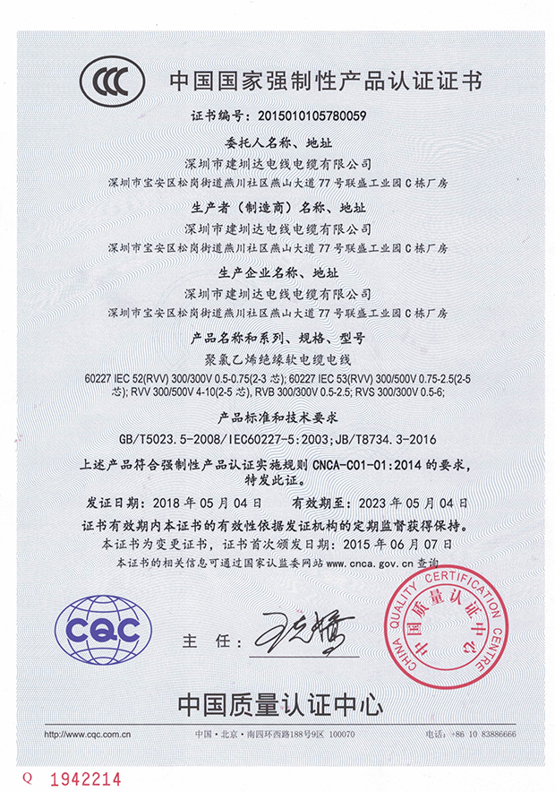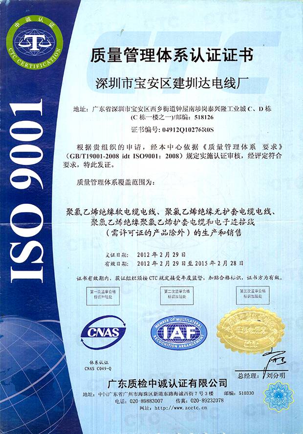 建圳達(dá)電纜立足于中國(guó)深圳,擁有技術(shù)精湛的隊(duì)伍、現(xiàn)代化生產(chǎn)設(shè)備、精密的檢測(cè)儀器,從原材料、生產(chǎn)、成品嚴(yán)格按照國(guó)家標(biāo)準(zhǔn)檢測(cè),通過多個(gè)認(rèn)證。
